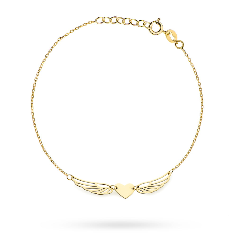Złota bransoletka skrzydła i serce 19cm 585