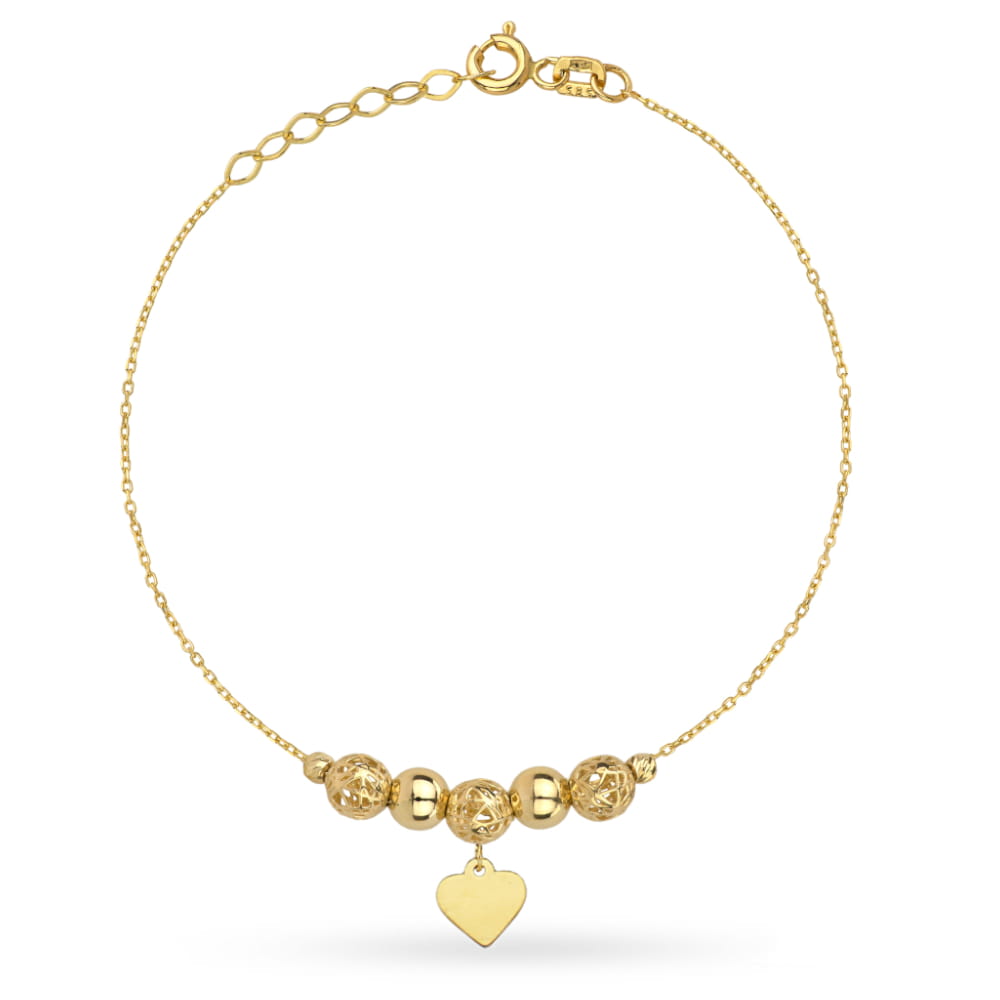 Złota bransoletka ażurowe kulki i serce 17+2cm 585