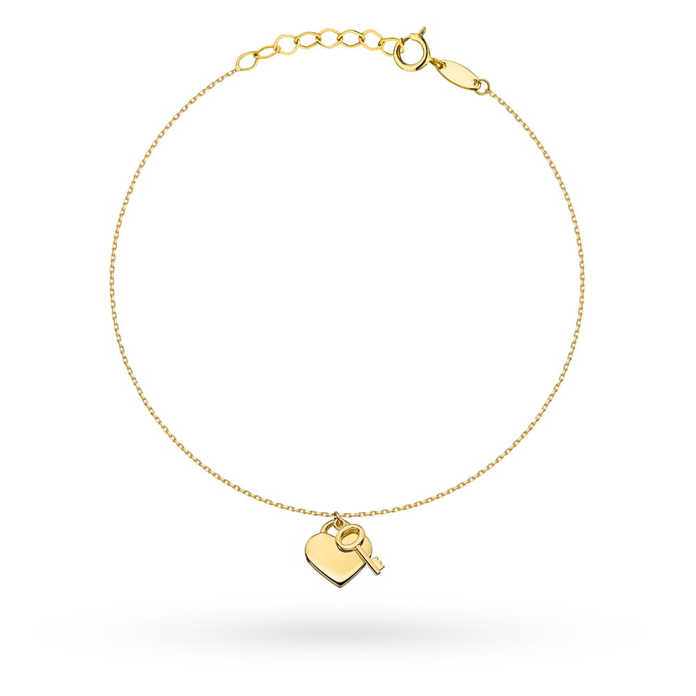 Złota bransoletka serce i kluczyk 17+2cm 585