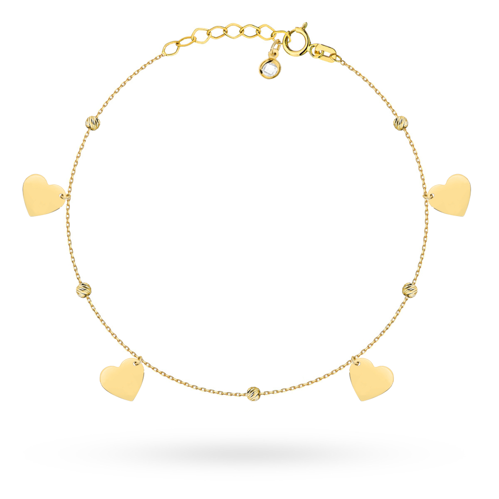 Napisz pierwszą opinię o „Bransoletka złota wiszące serduszka i diamentowane kulki na nogę pr. 585”