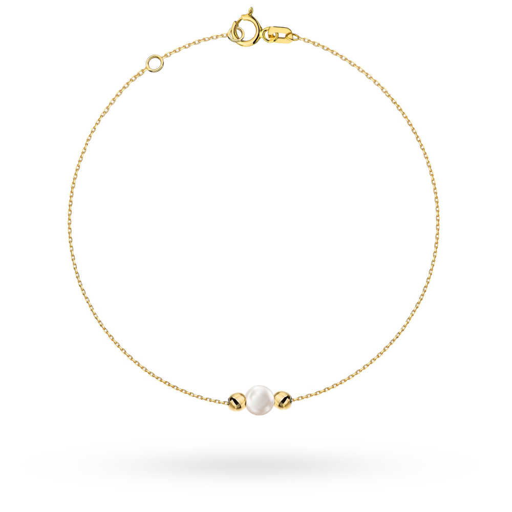 Bransoletka złota z perłą i gładkimi kulkami