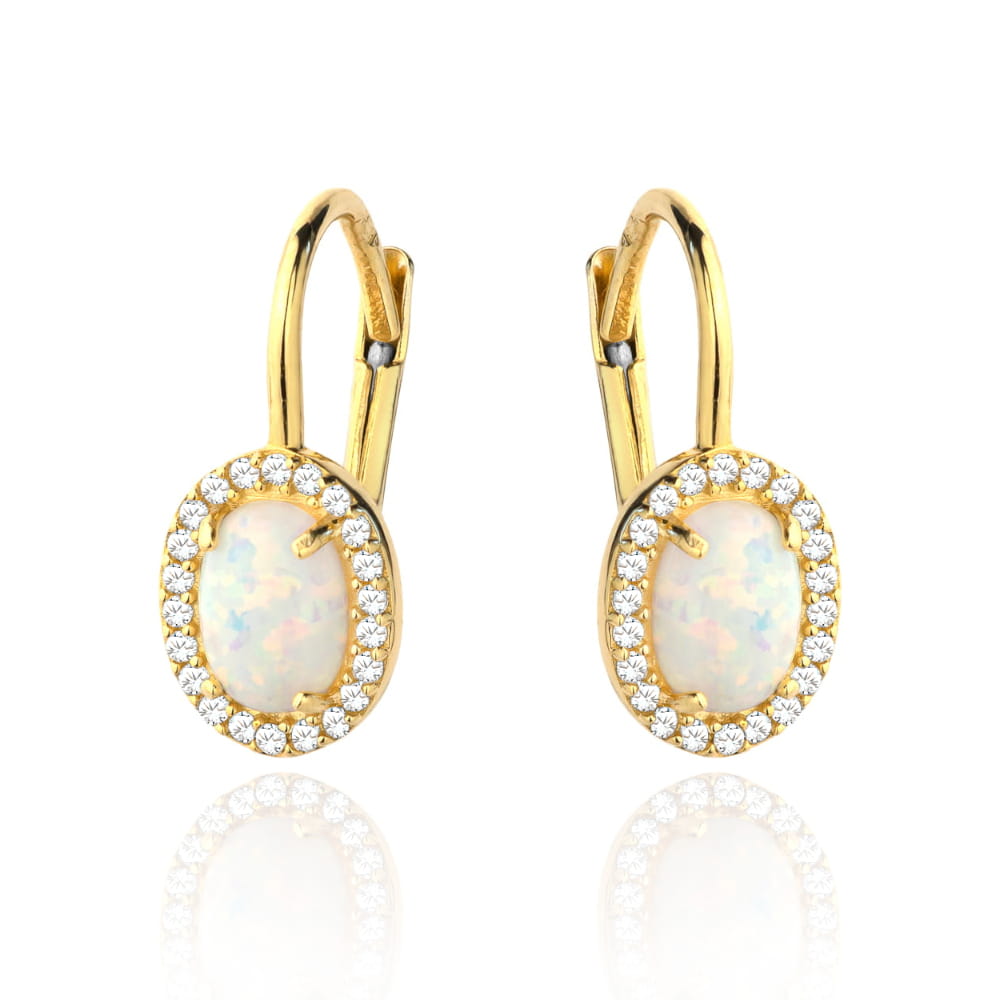 Kolczyk złoty Opal owalny otoczony cyrkoniami pr. 585