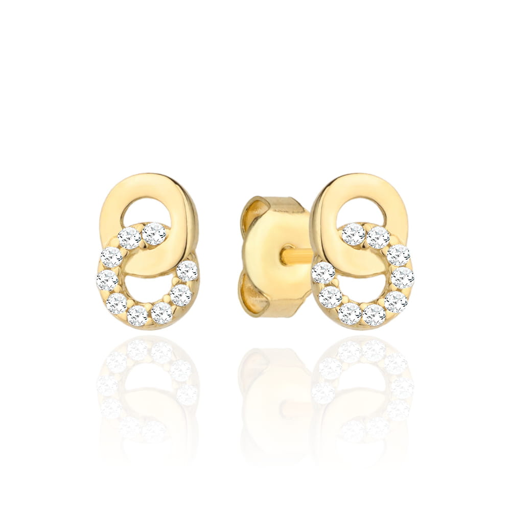 Kolczyki dwa splecione kółka złote i z cyrkonii pr. 585