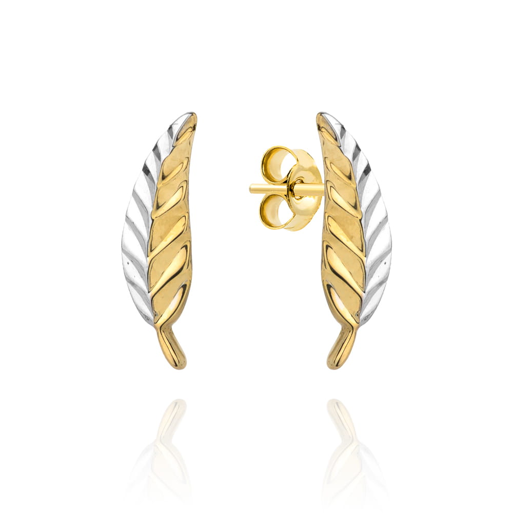 Kolczyki listek w dwóch kolorach złota