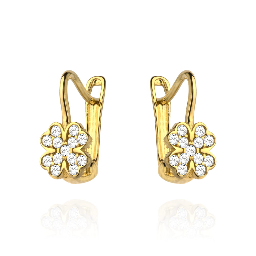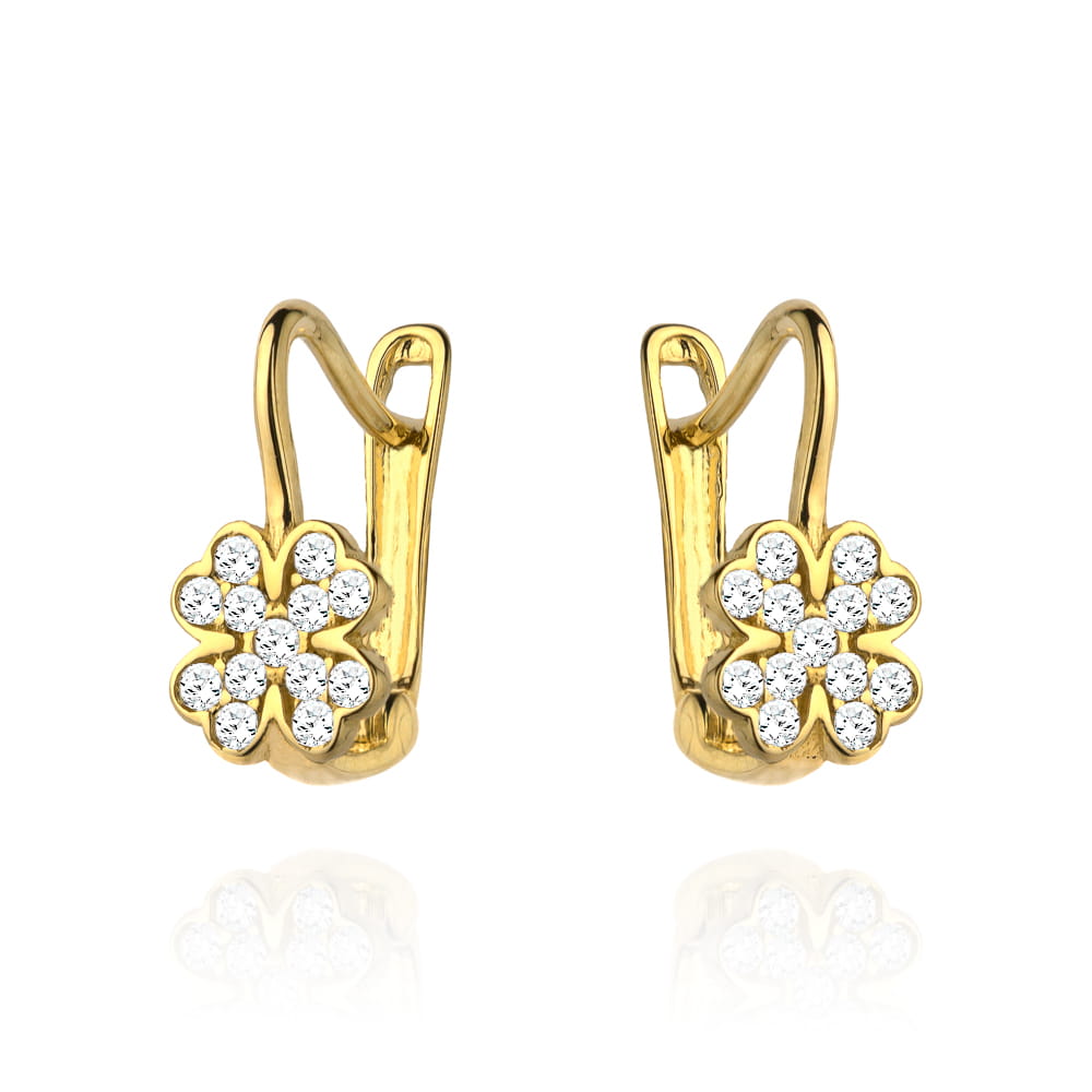 Kolczyki złota koniczynka wypełniona cyrkoniami pr. 585