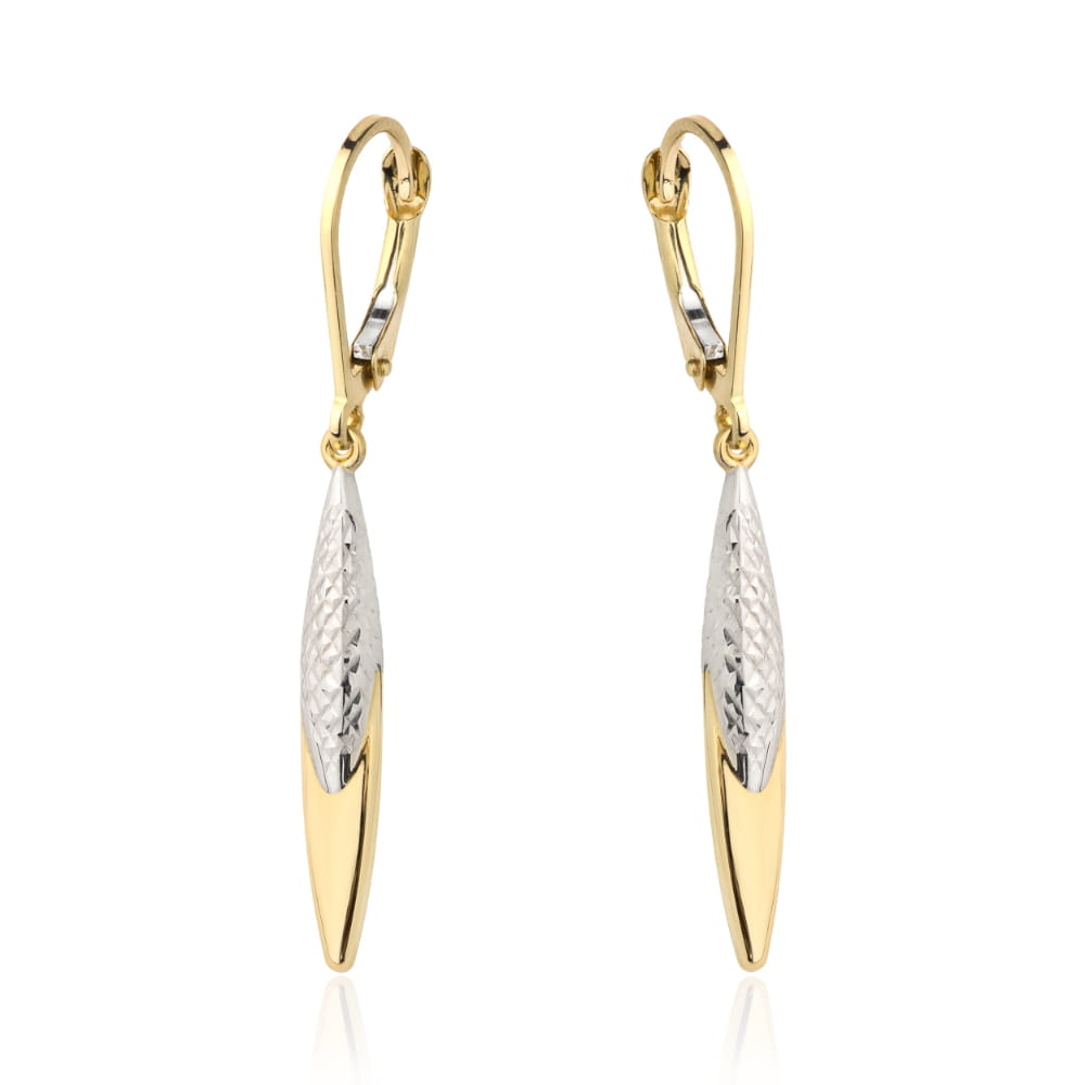Kolczyki złota łezka zdobiona białym złotem