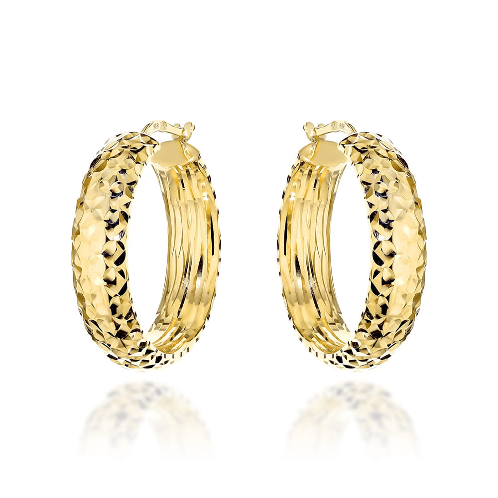 Kolczyki złote koła diamentowane z szeroką szyną pr. 585