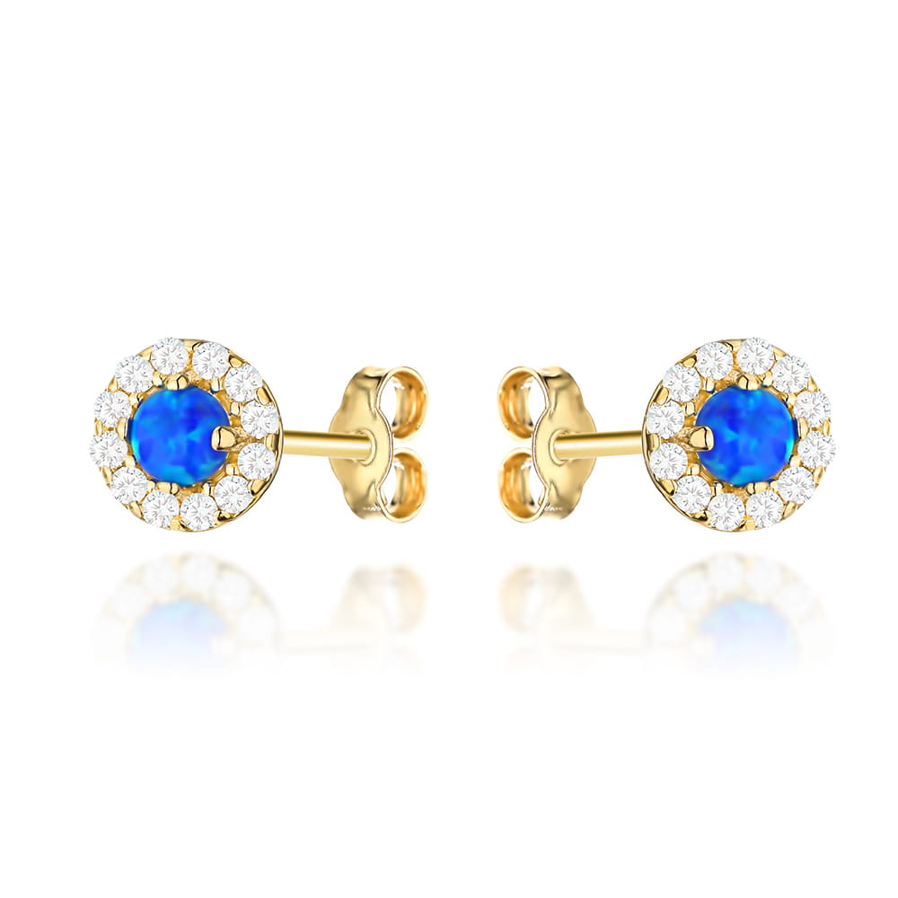 Kolczyki złote kółeczka z cyrkoniami i kamień opalit pr. 585