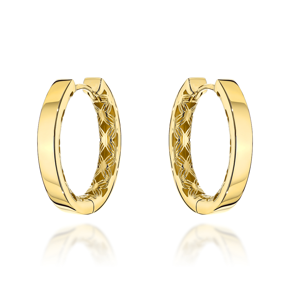 Kolczyki złote kółka gładkie wewnętrznie zdobione ażurem pr. 585