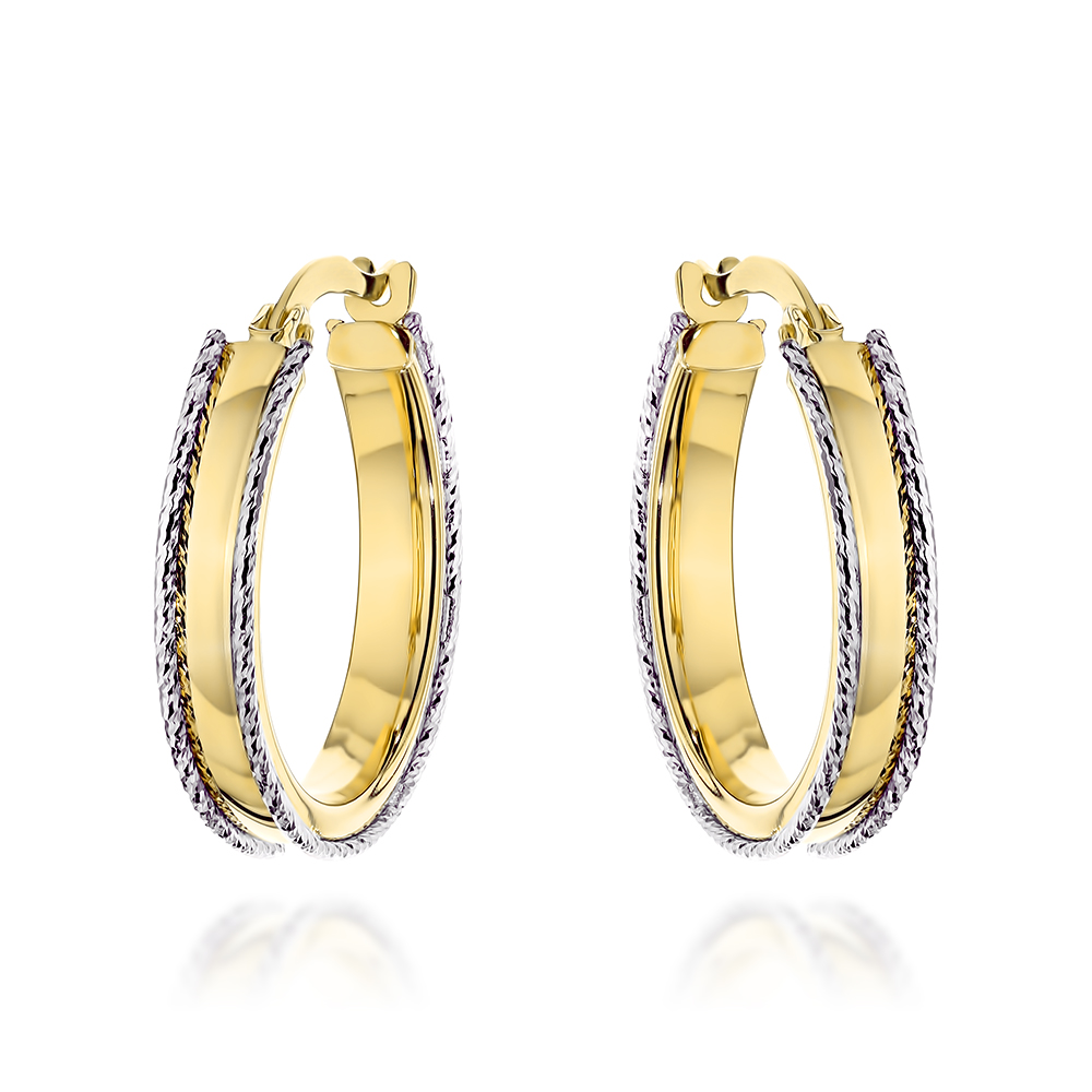 Kolczyki złote kółka zdobione na brzegach w dwóch kolorach złota