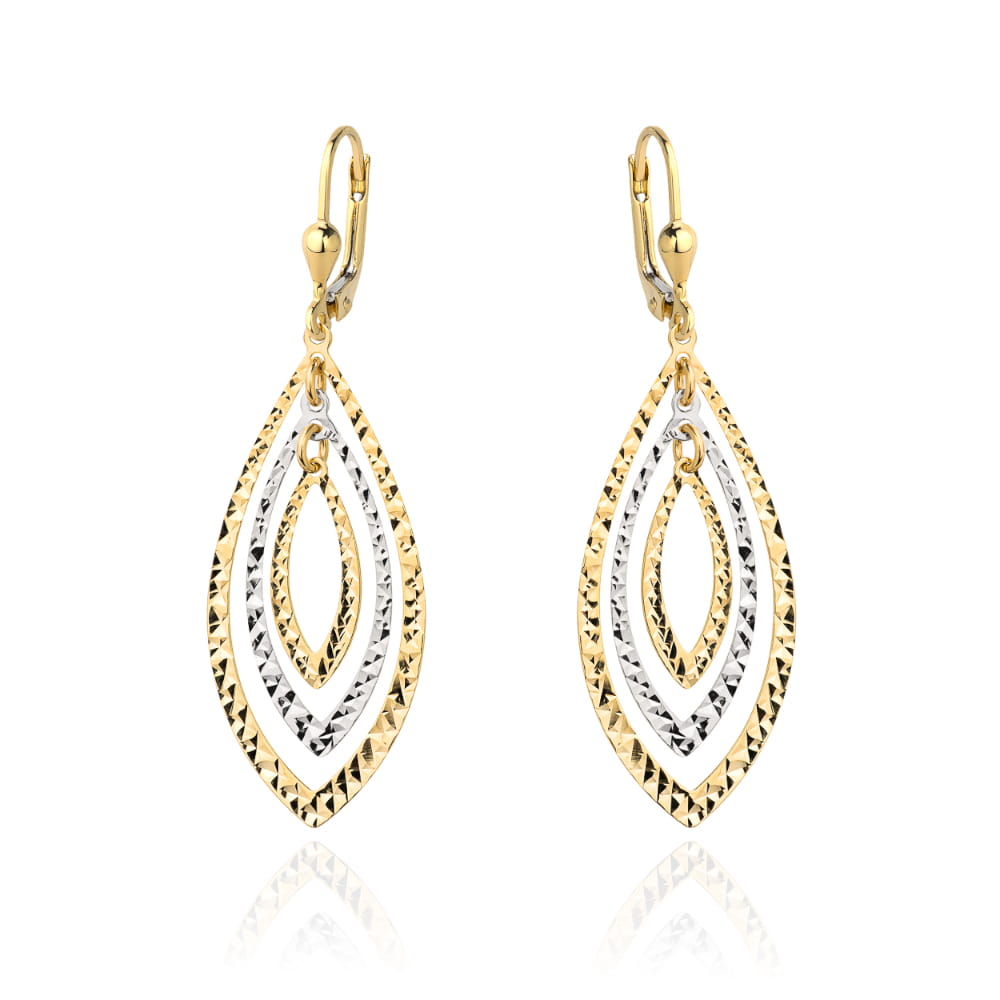 Kolczyki złote listki diamentowane z białym złotem pr. 585