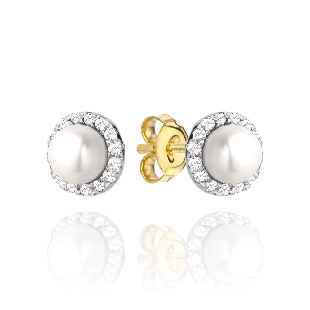Kolczyki złote perełka otoczona cyrkoniami