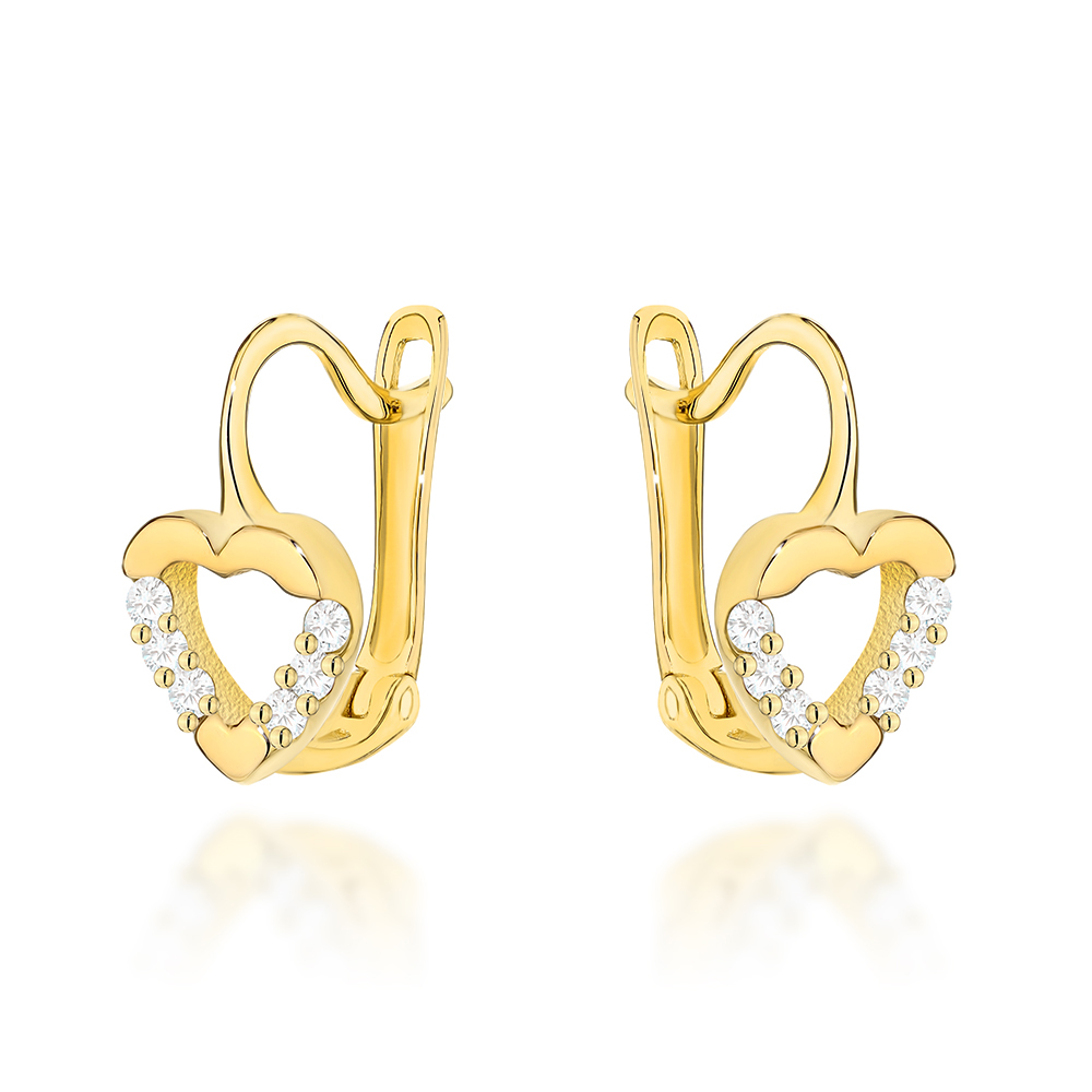 Kolczyki złote serce i cyrkonie po bokach pr. 585