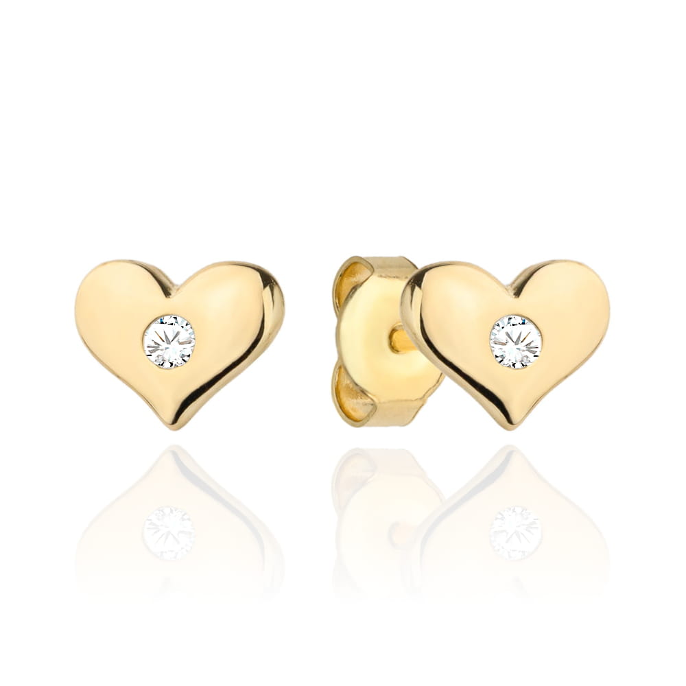 Kolczyki złote serduszko z centralną cyrkonią