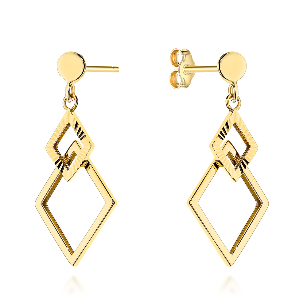 Kolczyki złote wiszące romby zdobione diamentowaniem pr. 585