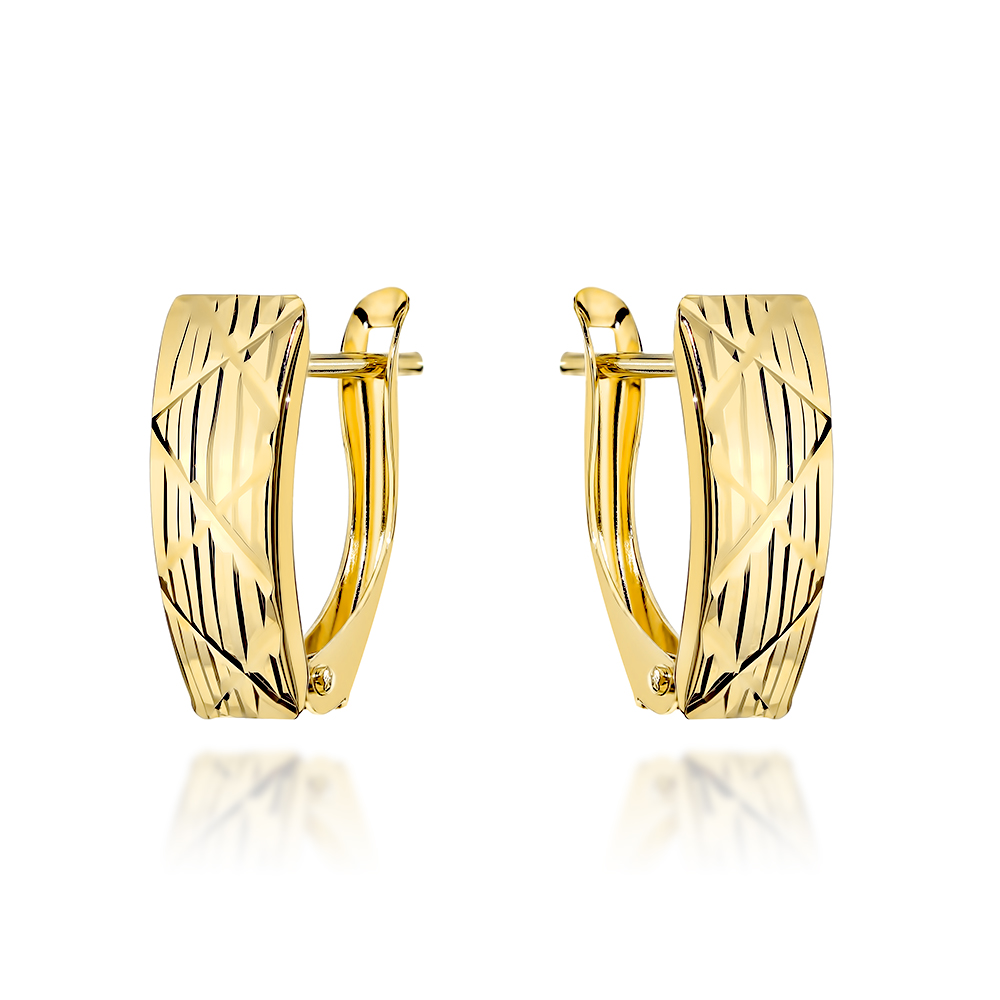 Kolczyki złote zdobione diamentowanymi paskami pr. 585