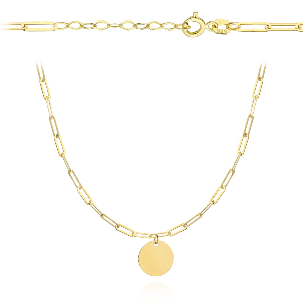 Naszyjnik złote ogniwa i pełne koło z przedłużką