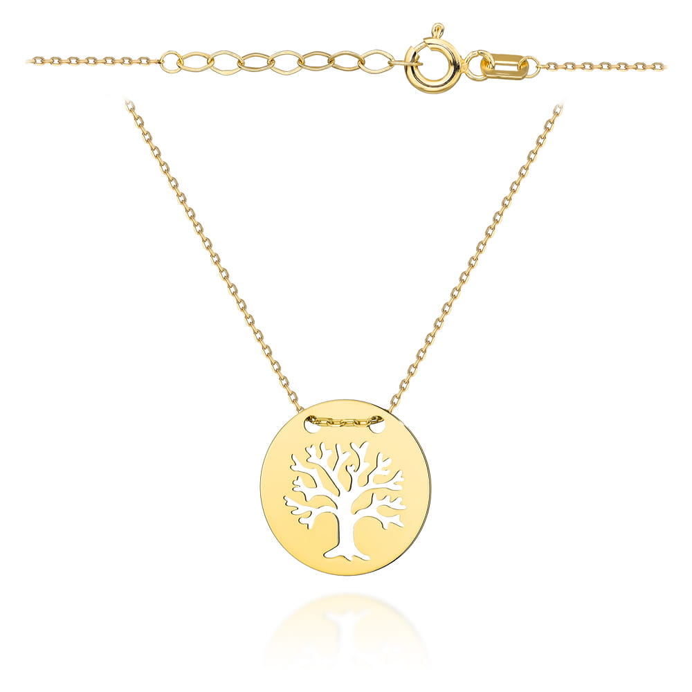 Złoty naszyjnik drzewko szczęścia w kółku 45cm 585