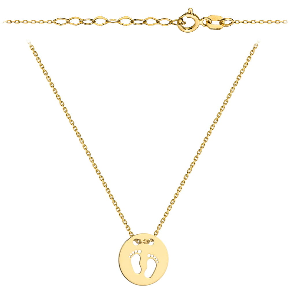 Złota naszyjnik z zawieszką stópki w kole 41+2,5cm 585