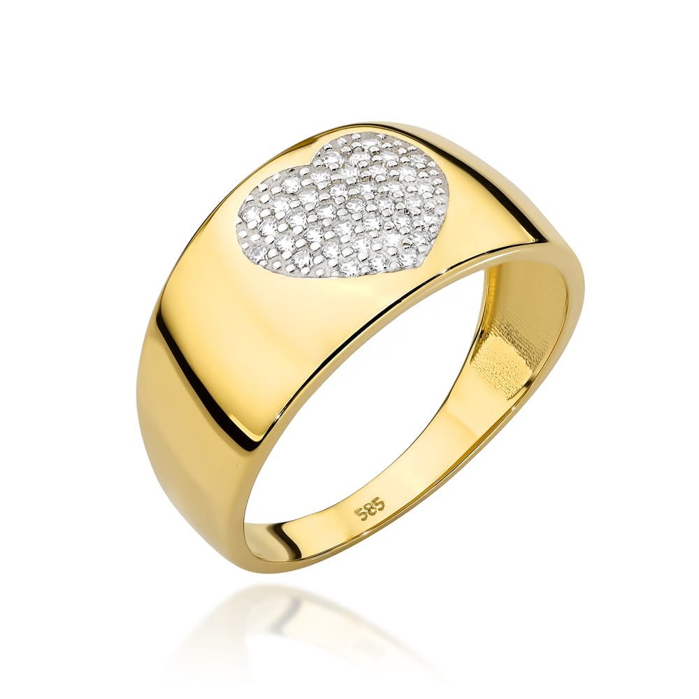 Złoty pierścionek z sercem wysadzanym cyrkoniami 585