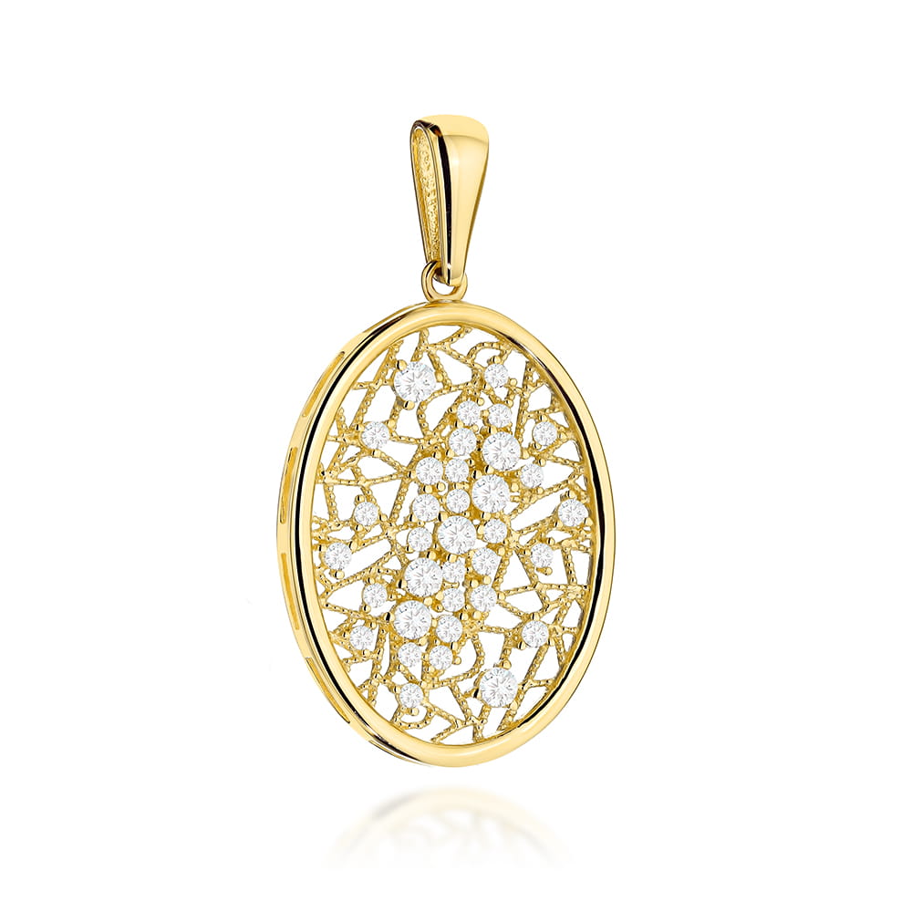 Zawieszka złota ażurowy owal z cyrkoniami pr. 585