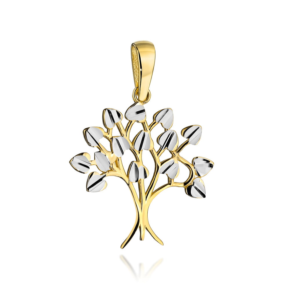 Zawieszka złota diamentowane drzewko szczęścia w dwóch kolorach złota pr. 585