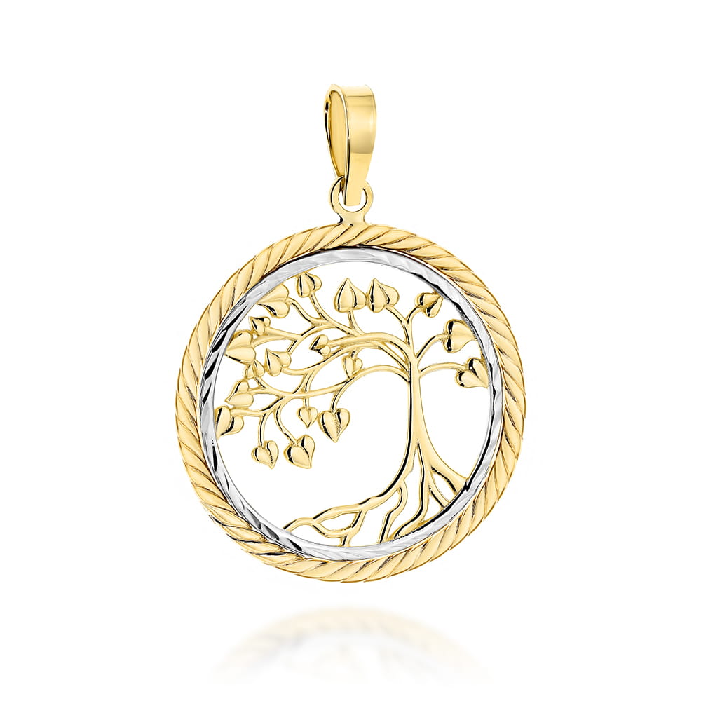 Zawieszka złota drzewko szczęścia w dwóch kolorach złota i plecionej oprawie